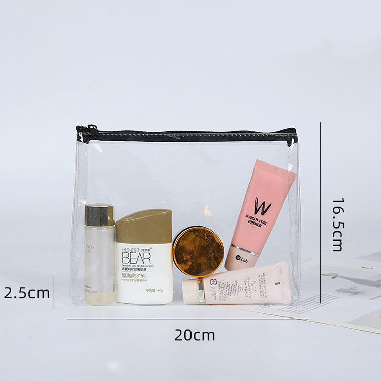 Stoklarımızdaki Fermuarlı PVC Çantanın boyutu 20*2.5*16.5cm'dir, bireysel kozmetikler nispeten büyük olmadığı ve onlara uymayabileceği sürece piyasadaki çoğu kozmetik ürününe uygundur. Ancak üretici olduğumuz için, boyut özelleştirmesinin yanı sıra müşterilerin ihtiyaçlarına göre farklı boyutları da özelleştirebiliriz, aynı zamanda şekil de özelleştirilebilir.