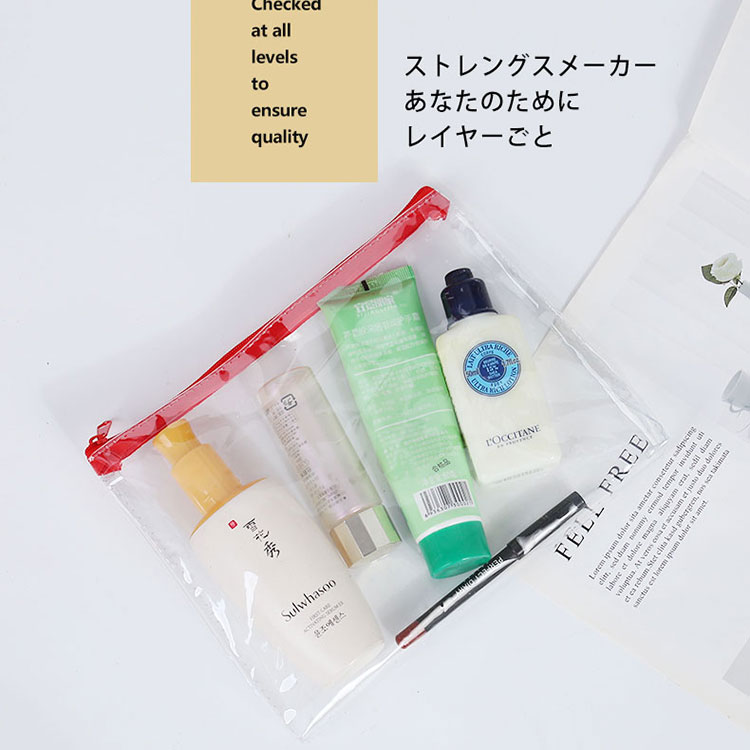 Fermuarlı PVC Çanta suya dayanıklıdır ve seyahat sırasında deodorant, diş macunu, makyaj ve cilt bakım ürünleri gibi güzellik malzemelerinizi saklamak için kullanılabilir. Çanta şeffaftır, böylece içinde ne olduğunu görebilirsiniz ve hızlı ve verimli bir paketleme yapmanıza olanak tanır.Fermuarlı pvc poşetleri çantanıza koyarak banyo malzemelerinizi düzenlemenize yardımcı olur ve çantalardan eşya alıp koymanız kolaydır.